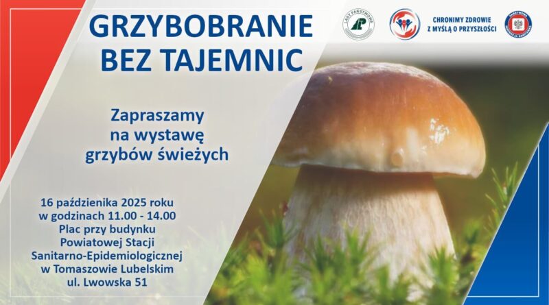 Czytaj więcejPowiatowa Stacja Sanitarno-Epidemiologiczna w Tomaszowie Lubelskim oraz Nadleśnictwo Tomaszów zapraszają 16 października 2025 roku na wystawę grzybów świeżych przed budynkiem