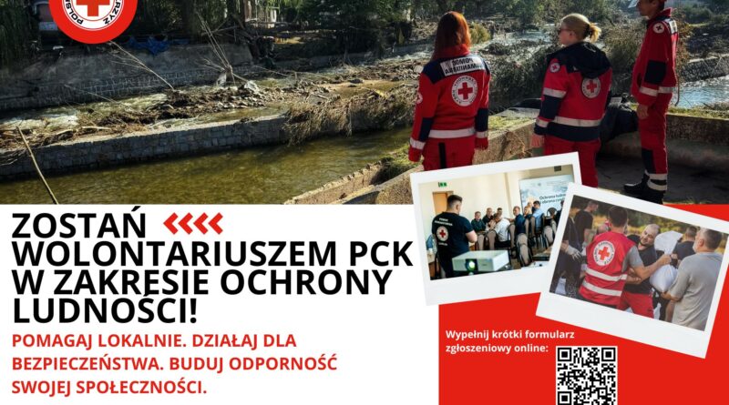 Polski Czerwony Krzyż od ponad 100 lat działa na rzecz potrzebujących i społeczności lokalnych. Sieć wolontariuszy stanowi kolejny etap misji PCK, mającej na celu budowanie odporności społecznej, promowanie wiedzy o bezpieczeństwie oraz wspieranie mieszkańców w trudnych sytuacjach. Zostań wolontariuszem PCK i pomóż uczynić Lubelszczyznę miejscem bardziej odpornym, bezpiecznym i solidarnościowym.